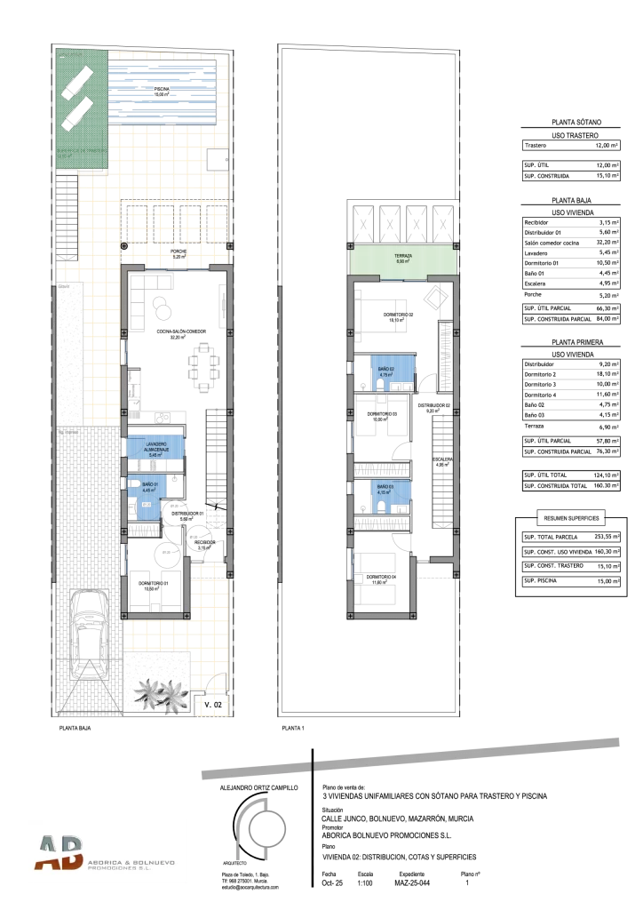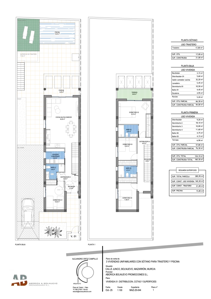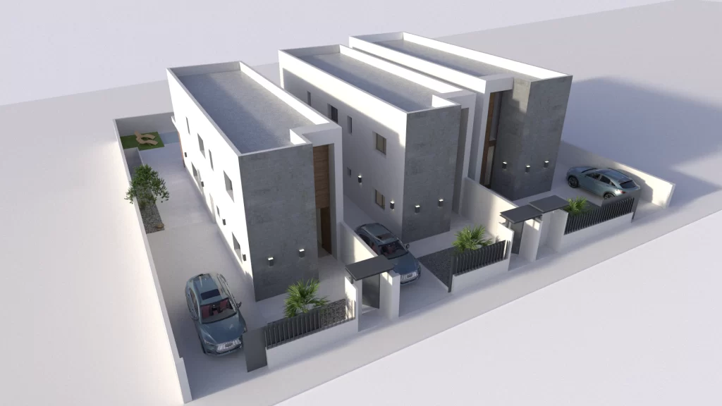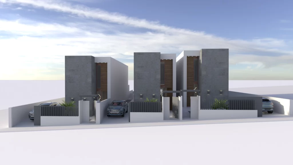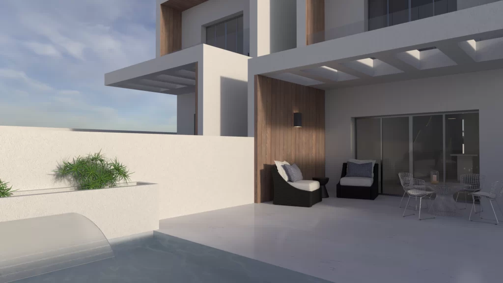 - Exteriores de Disfrute: Cada villa se entrega con una piscina privada de 15 m² y zonas exteriores terminadas con una combinación de hormigón impreso para vehículos, pavimento antideslizante en zonas de paso y áreas de césped artificial y gravilla, creando un entorno limpio y de bajo mantenimiento.